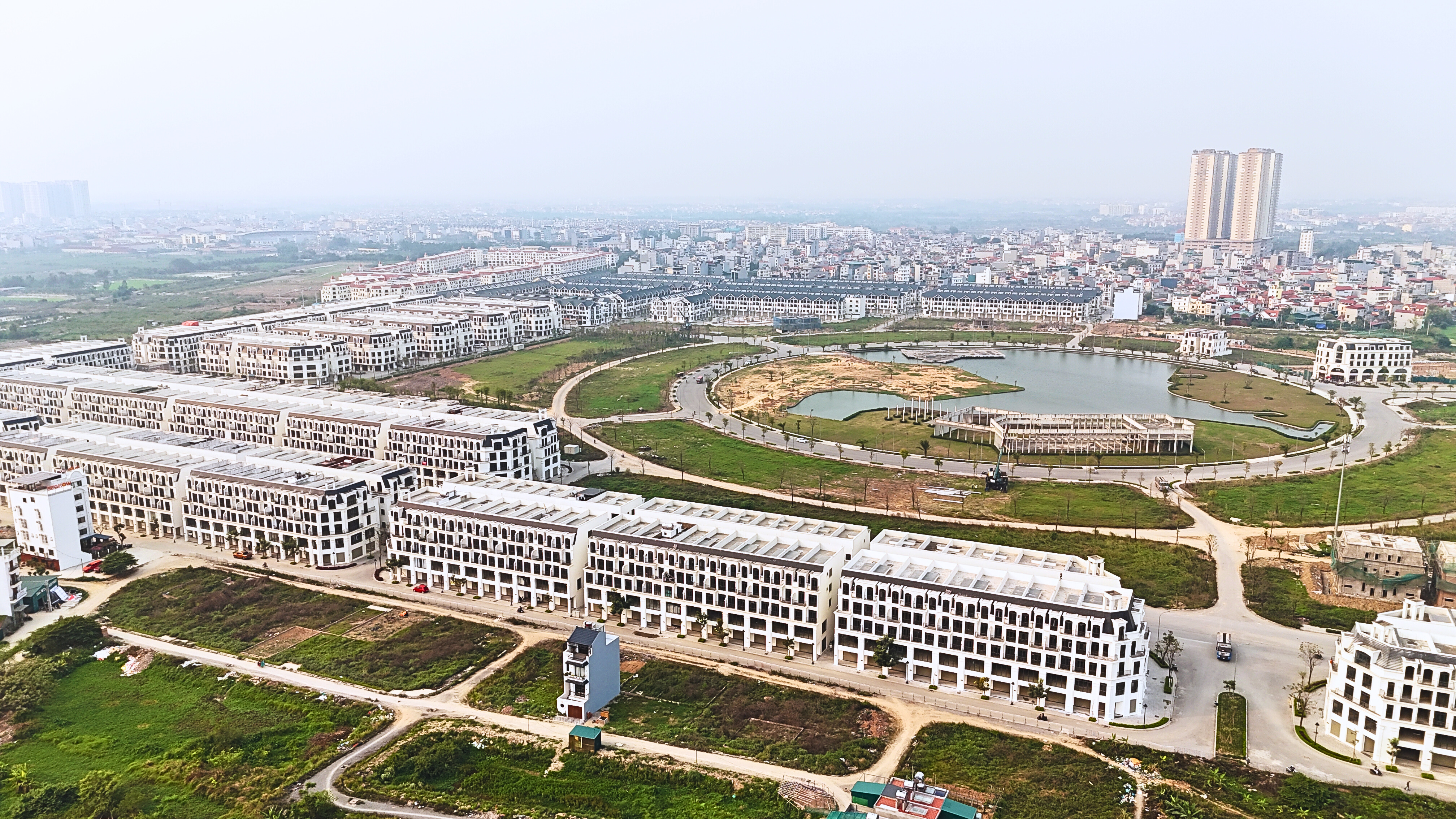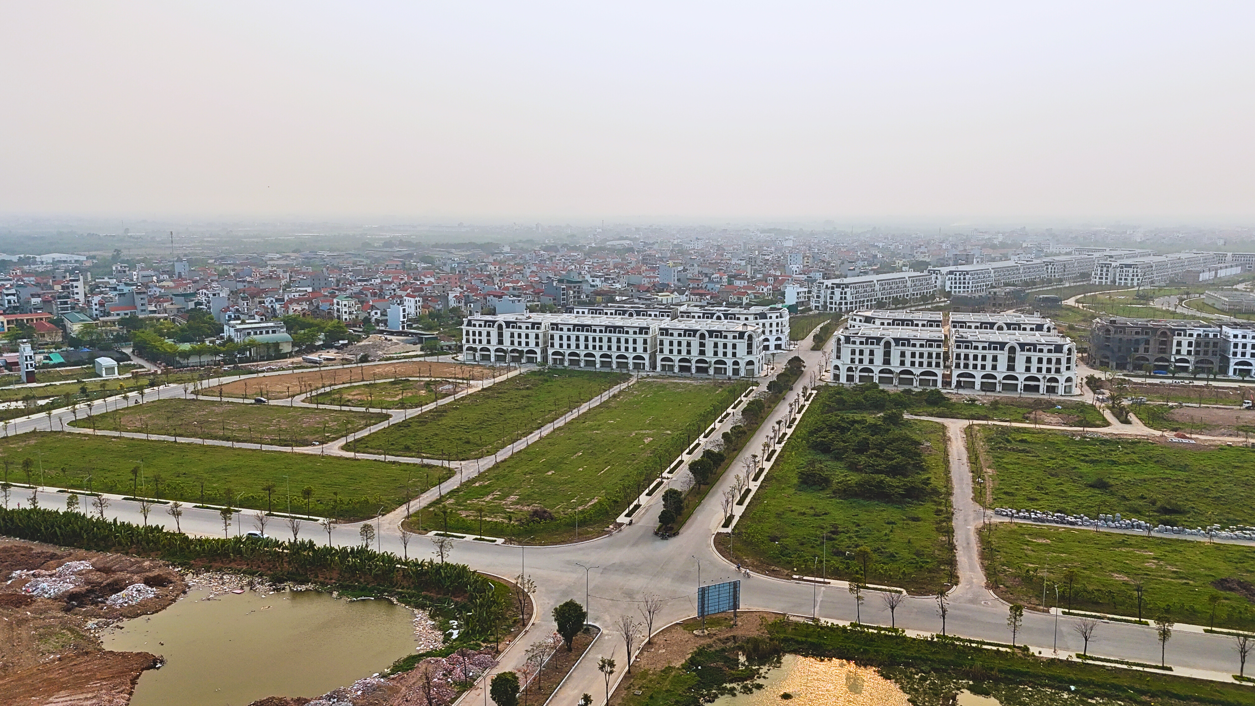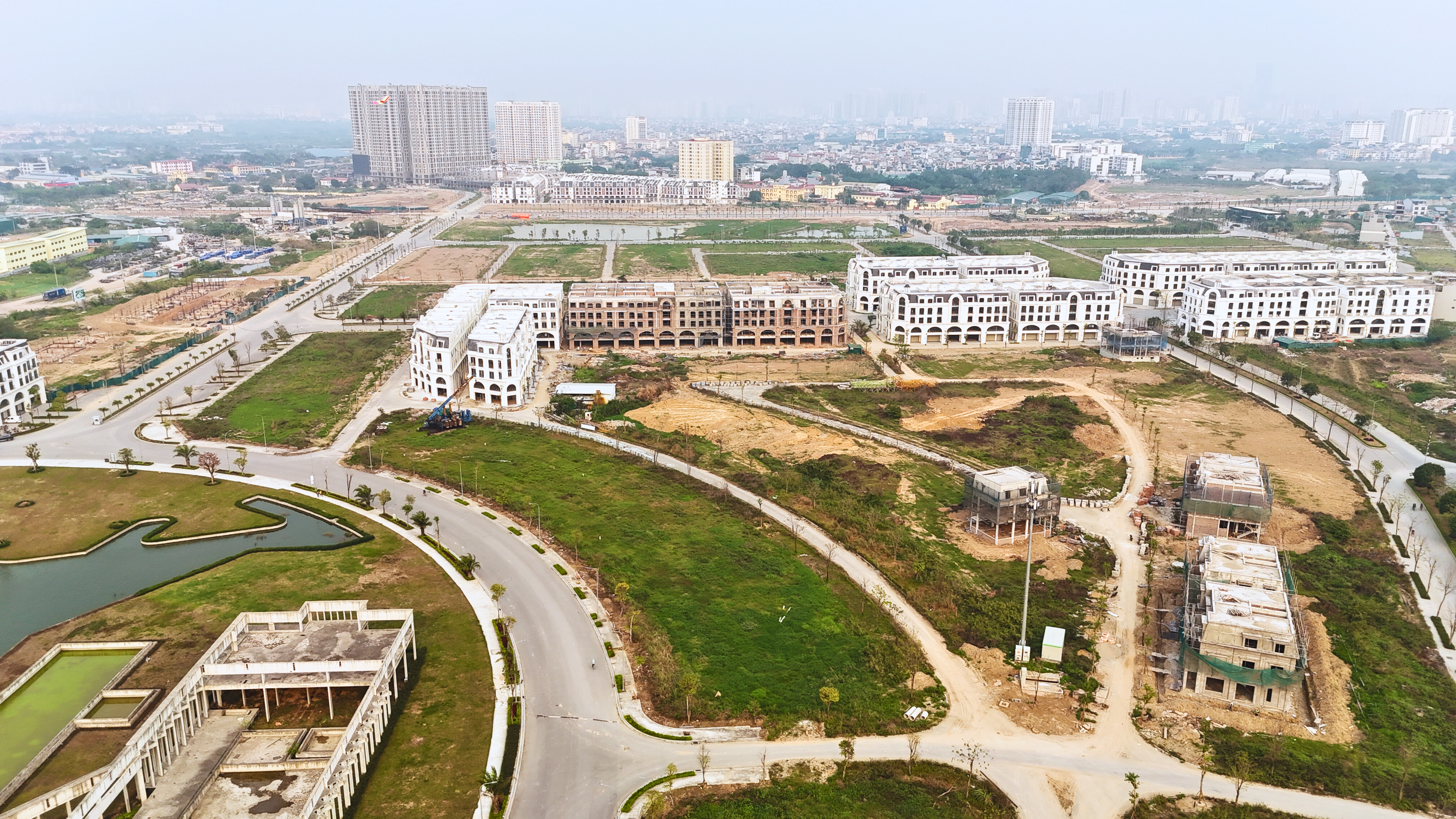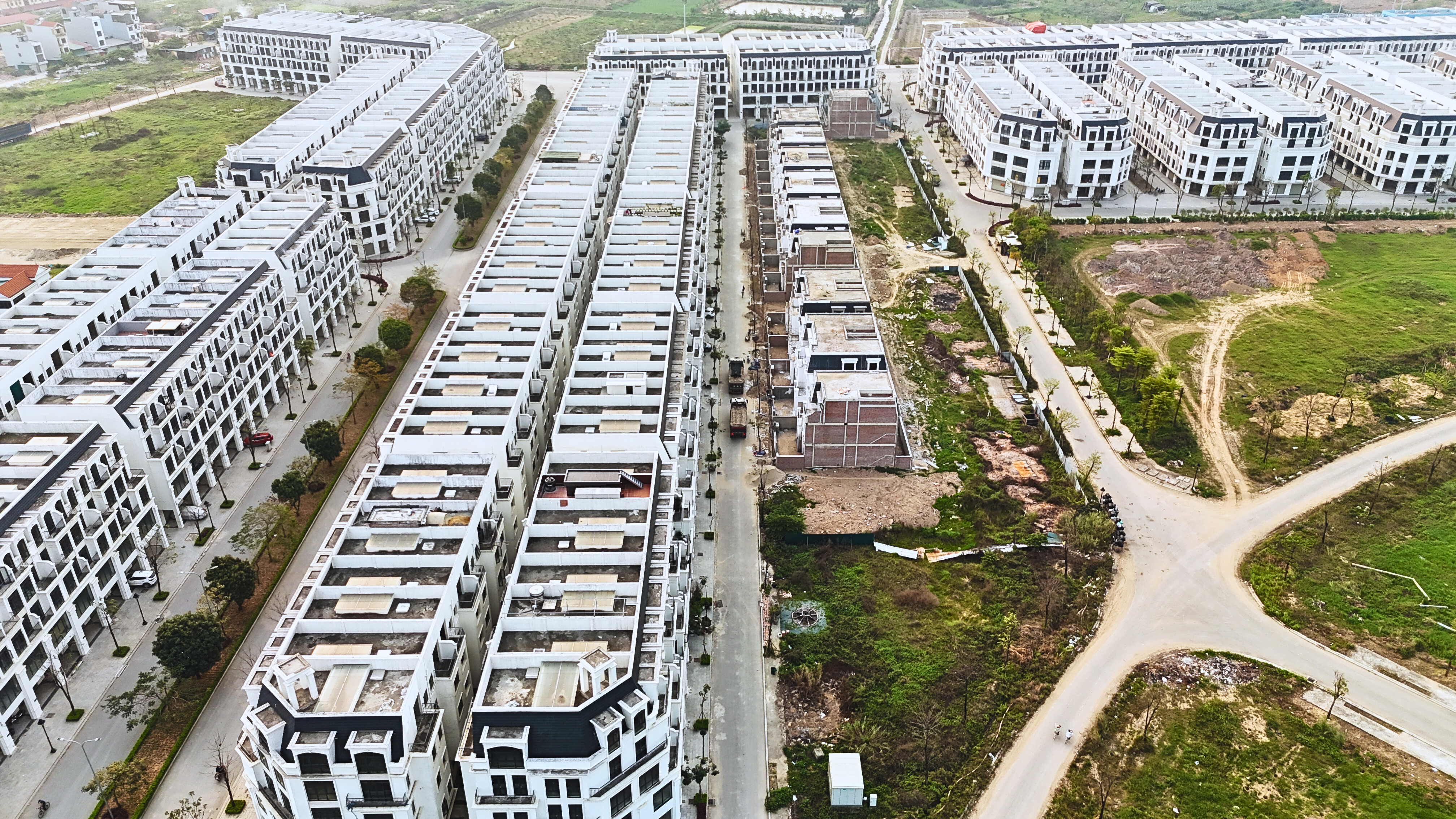 Hàng loạt liền kề, shophouse hoàn thiện nhưng bỏ không, treo biển bán và cho thuê la liệt; chỉ vài hộ dân và công ty bất động sản lác đác sử dụng.