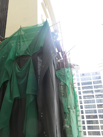 Sự bức xúc của cư dân ở đây lên tới cao độ khi chủ đầu tư quyết định "cơi nới", biến một phần sân vườn chung ở tầng trệt tòa nhà để xây lắp dàn thang máy khủng chạy suốt từ tầng một đến tầng 13. Vì thế, sáng 21/9 người dân tập trung trước cửa tòa nhà phản đối chủ đầu tư. Thanh tra Sở Xây dựng Hà Nội đã phải ra quyết định tạm dừng việc thi công thang máy, để kiểm tra lại hồ sơ thiết kế có thi công đúng giấy phép không?