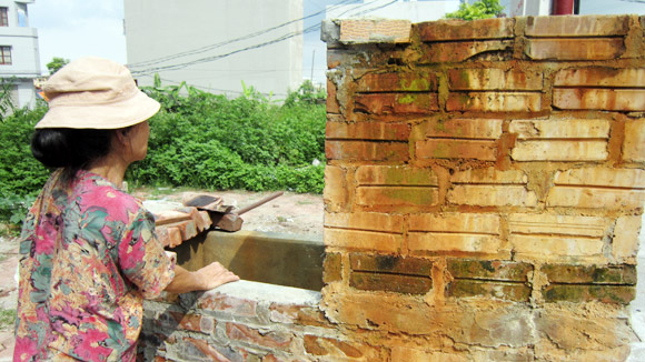 Vừa xúc những chậu cát, sỏi có màu vàng khè, bốc mùi hôi tanh từ trong bể ra, bà Lê Thị Nhung - người dân sống tại khu vực cho biết, để có nước sinh hoạt, từ thời điểm đào móng xây nhà, các hộ dân đã phải khoan giếng. Nước giếng khoan bơm lên chưa qua bể lọc có màu vàng và mùi tanh của kim loại, để khoảng vài phút thì bọt, váng nổi đầy. Sau khi lọc qua nhiều lớp cát sỏi, dù nước có trong hơn nhưng vẫn còn mùi khó chịu, không thể dùng để ăn uống. Do khu vực này nằm sát 1 nghĩa trang nên càng khiến người dân lo lắng về chất lượng nguồn nước ngầm. “Trung bình 1 tuần gia đình tôi thay cát bể lọc 1 lần. Lớp cặn bẩn đọng ở dưới khá dày. Do nước nhiều cặn nên khi bơm vào bình nóng lạnh hay máy giặt sẽ khiến các thiết bị này nhanh hỏng. Vì vậy, tôi phải giặt tay, nước ăn uống phải đi mua từng can nên rất tốn kém, vất vả” - bà Nhung than thở.