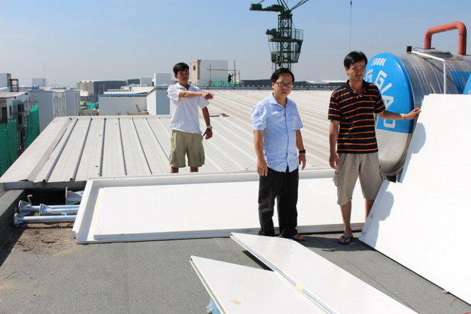 Trước đó, từ chiều 30-10, nhiều người dân sinh sống tại chung cư C3 (cao 5 tầng) trong khu dân cư Ehome4 thấy một nhóm người vận chuyển các thiết bị gồm thanh kim loại, dây cáp… lên nóc chung cư và bắt đầu thi công.