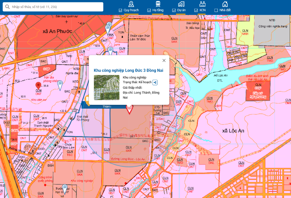 Khu công nghiệp Long Đức 3 có diện tích hơn 244ha tại xã Bình An và Long Thành, tổng vốn đầu tư khoảng 1.800 tỷ đồng.