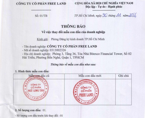 Công ty cổ phần Free Land thành lập năm 2014 với vốn điều lệ hơn 1.000 tỉ đồng. Ngành nghề chính là tư vấn, quản lý bất động sản, đầu tư xây dựng khu công nghiệp, khu đô thị và kinh doanh bất động sản.