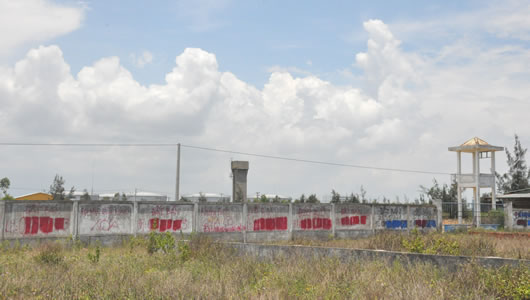 Năm 2014, bức tường của sân bay Nước Mặn dọc đường Trường Sa đối diện resort Crown Plaza nhan nhản thông tin rao bán đất.