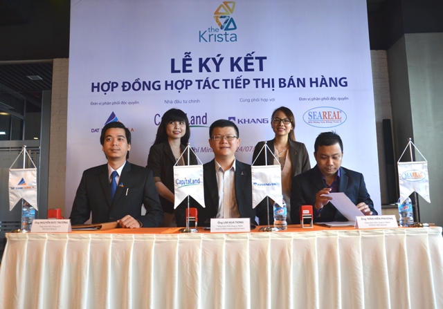Nghi thức ký kết giữa chủ đầu tư và 2 đơn vị phân phối độc quyền.