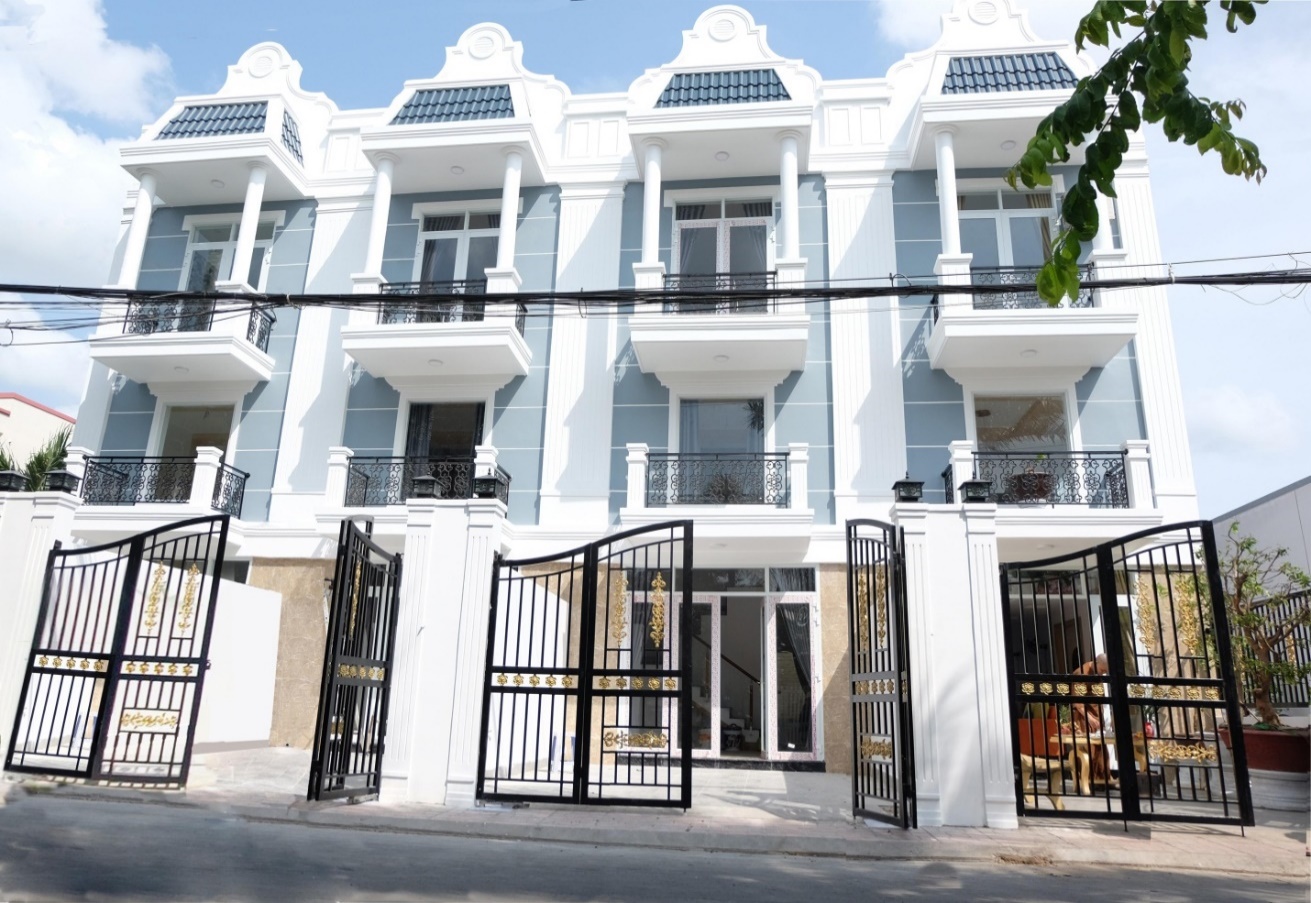 Hình ảnh một dãy nhà đã hoàn thiện tại KDC cao cấp Phố Xanh – Phú Tân