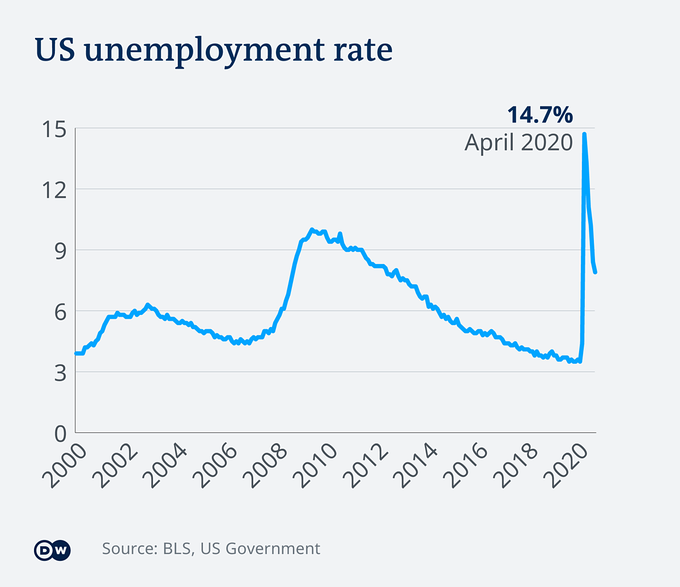 Tuy nhiên, tất cả những xu hướng tích cực này đã đột ngột đảo chiều khi đại dịch lan đến Mỹ đầu năm 2020. Tỷ lệ thất nghiệp có thời điểm lên tới 14,7%. Và dù số liệu này đã giảm về 6,7% hiện tại, tỷ lệ thất nghiệp vẫn cao gấp đôi so với cuộc khủng hoảng trước. Số người thất nghiệp hiện nhiều hơn 5 triệu so với đầu nhiệm kỳ của Trump.