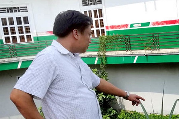Ông Cường bên dãy nhà bị hư hỏng do thủy điện dâng nước