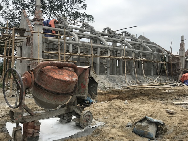 Chỉ sau 1 thời gian ngắn, phần thô của 6 ngôi nhà và cổng Tam quan đã được xây dựng xong. Phần nền, tường rào và một số hạng mục khác đang được xây dựng dở dang. Nhiều vật liệu đang được tập kết trong khuôn viên để tiếp tục xây dựng.