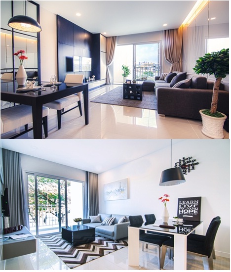Hình ảnh phòng khách – căn hộ 2 và 3 phòng ngủ, nhà mẫu Sunrise Riverside
