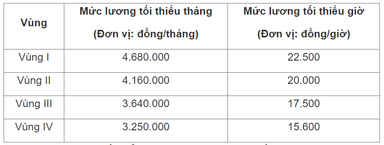 Hiện hành, mức lương tối thiểu vùng đang áp dụng (đến hết ngày 30/6/2024) theo Nghị định 38/2022/NĐ-CP