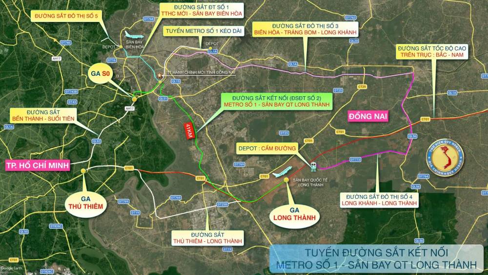- Dự án kéo dài tuyến metro Bến Thành - Suối Tiên đến Trung tâm hành chính tỉnh Đồng Nai và sân bay Long Thành
