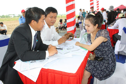 Sáng ngày 9.12, hơn 600 khách hàng đã có mặt tại sự kiện mở bán hơn 300 nền đất tại dự án khu dân cư trung tâm mở rộng P.6 (TP.Tân An, Long An) của Công ty Hưng Thịnh Land. Dự án rộng 31 ha gồm: nhà phố, trung tâm thương mại, trường học, bệnh viện… Công ty Hưng Thịnh Land cho biết mức giá đưa ra khoảng 4 triệu đồng/m2. Chị Lan (TP.Tân An) cho biết do mức giá phù hợp, cộng thêm dự án nằm ngay TP.Tân An nên chị đã đặt cọc mua hai nền với hy vọng sẽ có lợi nhuận trong 1 - 2 năm nữa.