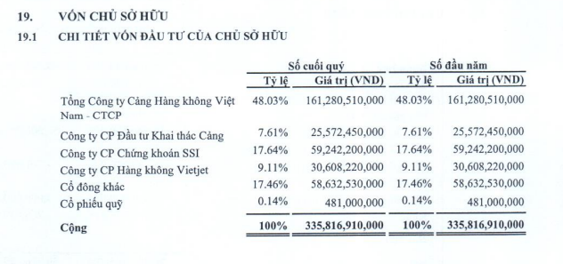 Cơ cấu cổ đông lớn tại Phục vụ Mặt đất Sài Gòn tính tới 31/3/2023.