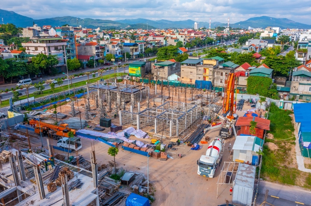 Tiến độ: Hầu hết các căn shophouse đã đổ móng và đang thi công phần thân.
