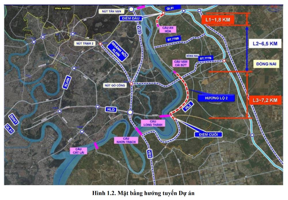 Thu hồi tổng 67ha tại phường Long Hưng (12ha), Tam Phước (5ha) và xã An Phước (50ha). Tổng vốn hơn 5.800 tỷ đồng (thành phần bồi thường 574 tỷ, xây dựng 5.315 tỷ theo PPP). Hoàn thành dự kiến 2028.