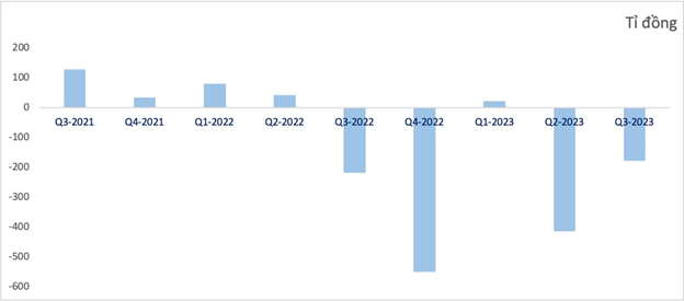 Dù đã giảm so với mức lỗ 219 tỷ đồng của quý 3/2022, nhưng gộp 9 tháng năm 2023, SMC lỗ 586 tỷ đồng, gấp hơn 6 lần so với cùng kỳ. Việc thua lỗ liên tục khiến khoản lợi nhuận chưa phân phối tại ngày 30/9 âm 206 tỷ đồng.