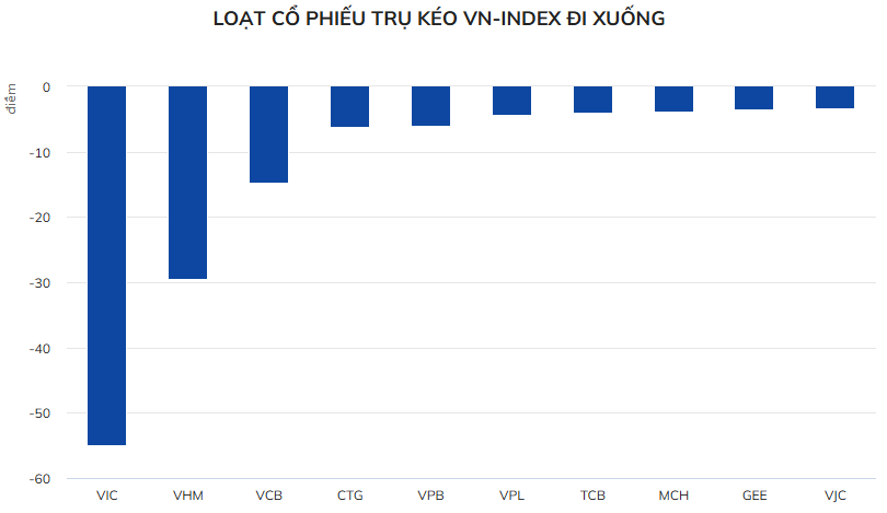 Nhóm cổ phiếu trụ cột kéo VN-Index lao dốc