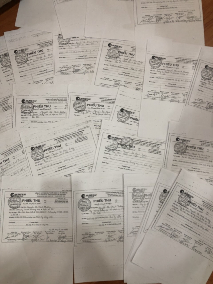 Phiếu thu tiền mua đất tại dự án Việt-Inc.