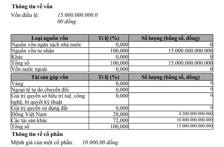 Theo đó, doanh nghiệp tăng vốn điều lệ từ 6.000 tỷ đồng lên 15.000 tỷ đồng. Trong đó, 28% tài sản góp vốn là tiền mặt, tương đương 4.200 tỷ đồng. 78% tài sản góp vốn là tài sản khác, tương đương 10.800 tỷ đồng.