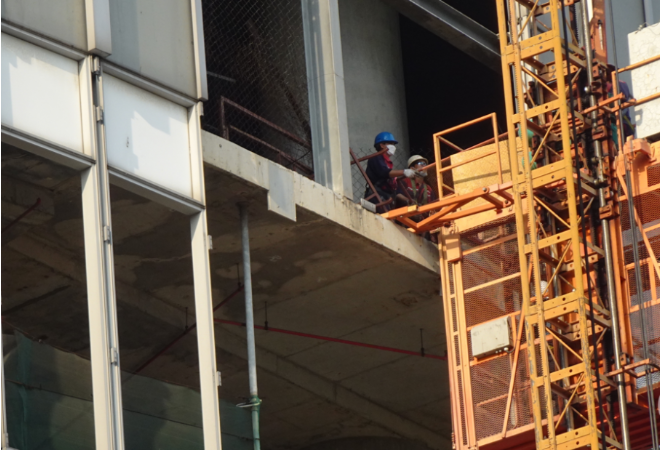 Ghi nhận thực tế của chúng tôi tại công trường dự án những ngày đầu tháng 12.2021, đã xuất hiện nhiều nhóm công nhân hối hả làm việc. Một số đang dọn dẹp lại công trường ở phần khối đế, số khác tất bật dựng lại cổng, bảng hiệu và tôn chắn quanh dự án. Phía trên các tầng cao có vài nhóm kĩ sư, chuyên gia xuất hiện để kiểm tra hiện trạng của dư án. Chiếc cần cẩu “đứng bánh” suốt nhiều năm qua nay đã di chuyển lên xuống đều đặn. Tên gọi của Saigon One Tower đã được thay đổi thành IFC One.