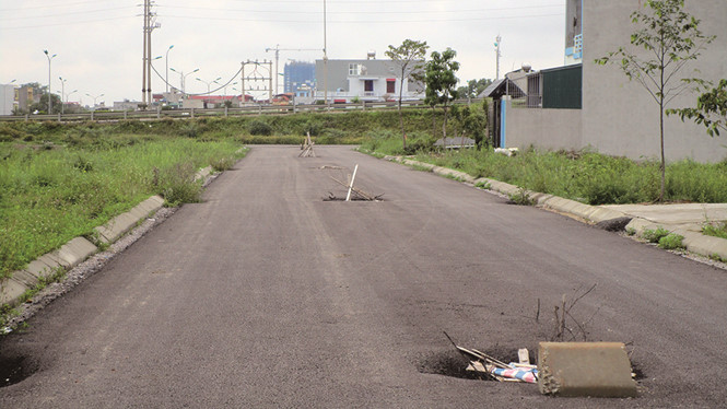 Không chỉ người dân mòn mỏi chờ sổ đỏ, tại mặt bằng 08, nhiều công trình hạ tầng đầu tư vẫn còn dở dang. Hệ thống đường giao thông xuống cấp, cống không có nắp khiến nhiều người gặp tai nạn. Đường điện không được lắp đặt, các gia đình phải tự “câu” điện từ nơi khác về sử dụng...