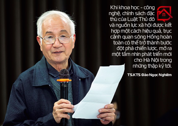 TS.KTS Đào Ngọc Nghiêm cho rằng bài toán then chốt vẫn là nguồn lực. Tiềm năng của sông Hồng là rất lớn, nhưng để biến tiềm năng thành động lực phát triển, Hà Nội cần có cơ chế đặc thù để huy động nguồn lực xã hội, đặc biệt là khu vực kinh tế tư nhân - một trong những trụ cột phát triển được Bộ Chính trị xác định. Khi khoa học - công nghệ, chính sách đặc thù của Luật Thủ đô và nguồn lực xã hội được kết hợp một cách hiệu quả, trục cảnh quan sông Hồng hoàn toàn có thể trở thành bước đột phá chiến lược, mở ra một tầm nhìn phát triển mới cho Hà Nội trong những thập kỷ tới.