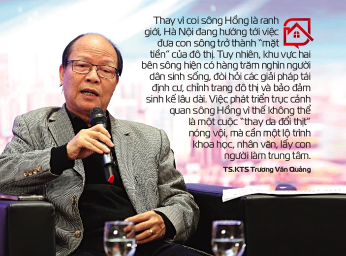 TS.KTS Trương Văn Quảng, Phó Tổng Thư ký Hội Quy hoạch Phát triển đô thị Việt Nam, nhận định điểm khác biệt căn bản của giai đoạn hiện nay nằm ở sự thay đổi tư duy. Thay vì coi sông Hồng là ranh giới, Hà Nội đang hướng tới việc đưa con sông trở thành “mặt tiền” của đô thị. Sự hoàn thiện của hệ thống thủy điện trên lưu vực sông Hồng đã tạo tiền đề quan trọng để kiểm soát dòng chảy, giảm thiểu rủi ro ngập lụt, mở ra cơ hội phát triển không gian ven sông theo hướng hiện đại và bền vững hơn.