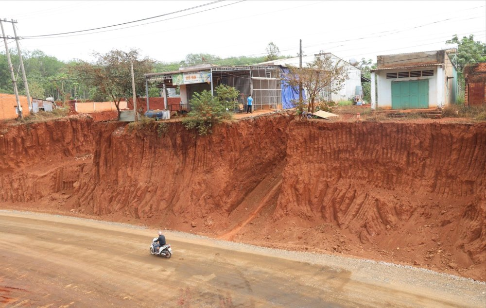 Trước đó, theo phản ánh, trong quá trình thi công dự án, việc hạ cốt nền đường tại đoạn Km10+200 - Km10+550 đã khiến khu vực phía trước nhà của một số hộ dân trở thành bờ vực sâu với vách đất dựng đứng, tiềm ẩn nguy cơ mất an toàn.