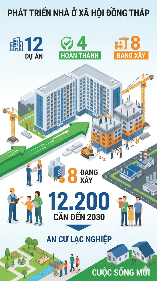 Với quyết tâm chính trị cao từ lãnh đạo tỉnh, cùng sự vào cuộc đồng bộ của các sở ngành và doanh nghiệp, Đồng Tháp đang từng bước biến mục tiêu 12.200 căn NƠXH thành hiện thực. Đây không chỉ là câu chuyện nhà ở mà còn là cam kết vì an sinh xã hội, góp phần xây dựng tỉnh phát triển bền vững, hiện đại. Người dân Đồng Tháp, đặc biệt là lao động trẻ và gia đình thu nhập thấp, đang kỳ vọng những căn hộ xã hội giá rẻ sẽ sớm mọc lên, mang lại mái ấm ổn định và hy vọng về một tương lai tốt đẹp hơn.
