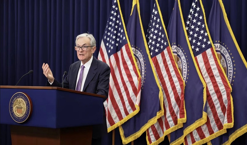 Ông Jerome Powell, Chủ tịch Cục Dự trữ Liên bang Mỹ (Fed) phát biểu tại cuộc họp báo tại Washington D.C., Mỹ ngày 29/10. Ảnh: Reuters.