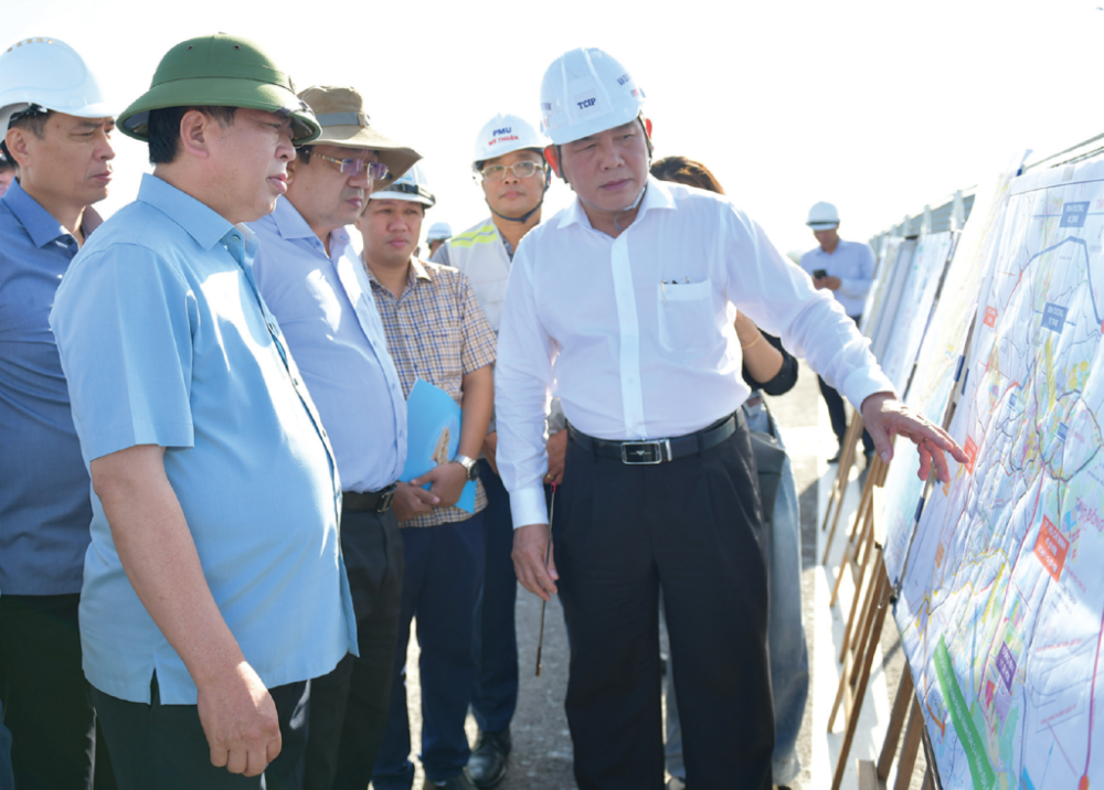 Bộ trưởng Bộ Xây dựng Trần Hồng Minh cùng Ủy viên Ban Thường vụ Tỉnh ủy, Phó Chủ tịch UBND tỉnh Nguyễn Minh Lâm kiểm tra tiến độ dự án đường Vành đai 3 TP.Hồ Chí Minh đoạn qua địa bàn tỉnh