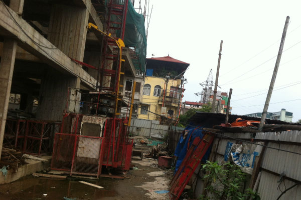 Giàn giáo bao quanh công trình đã mất gần hết