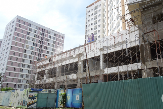 Ghi nhận thực tế ngày 12/10/2021, công trình vẫn còn nhiều ngổn ngang, một phần của dự án hiện đang được tô sơn bên ngoài. Tuy nhiên, số lượng công nhân khá hạn chế.