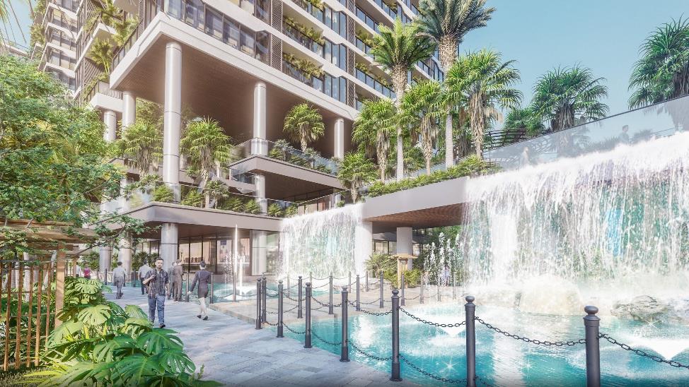 Hệ thống thác nước chảy róc rách ngày đêm tạo không gian sống chuẩn resort thuần khiết cho cư dân