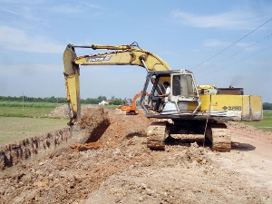 | Máy móc của Công ty Huỳnh Phan thi công tại Dự án Khu công nghiệp - cầu cảng Phước Đông |