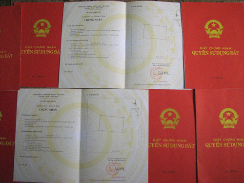 Một số giấy chứng nhận quyền sử dụng đất của các hộ gia đình thôn Kim Đôi ở khu Đồng Sau - Bờ Đó.