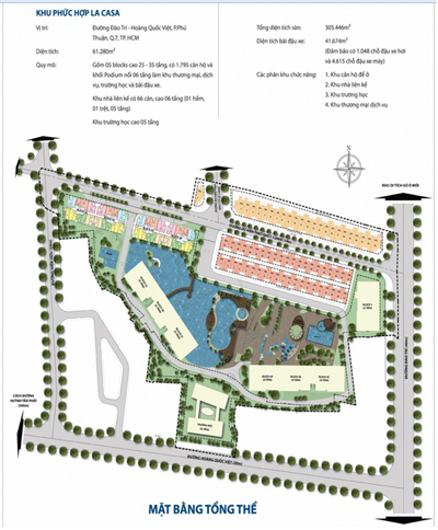 Dự án khu phức hợp La Casa tọa lạc tại đường Hoàng Quốc Việt – Đào Trí, Quận 7. Theo thông tin từ website chủ đầu tư, dự án gồm 07 block cao 35 tầng với 1.948 căn hộ; 01 block khách sạn - Văn phòng - TTTM cao 35 tầng và 1 khối Podium nổi 8 tầng làm bãi đậu xe. Chủ đầu tư đã bán căn hộ block 1A, 1B và bàn giao cho khách hàng.