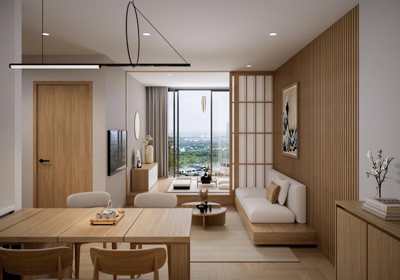 Phối cảnh phong cách nội thất Janpadi Style - một trong 4 phong cách quốc tế tại The Hybrid
