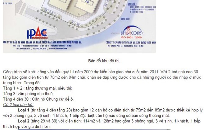 Thông tin chính thức từ website của dự án (phuchaland.com) cho biết, Khu tổ hợp chung cư cao tầng Nam Xa La có diện tích 7.395m2, toạ lạc tại khu đô thị mới Xa La (P. Phúc La, Q. Hà Đông). Dự án do liên danh giữa CTCP Đầu Tư Kinh doanh và phát triển hạ tầng KCN Phúc Hà và Công ty Đầu tư tư vấn và xây dựng Việt Nam (Vinaconi) làm chủ đầu tư. Theo thiết kế ban đầu, quy mô dự án gồm 2 tòa chung cư cao 30 tầng với tổng số khoảng 650 căn hộ, có diện tích dao động từ 75 – 84m2.