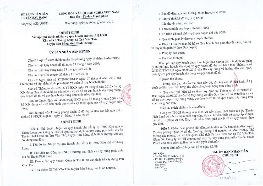 Nhằm giúp khách hàng có đánh giá khách quan và an tâm khi lựa chọn mua sản phẩm do Địa ốc Đất Vàng phân phối, đại diện Công ty đã cung cấp thông tin về bộ chứng từ pháp lý của dự án Thăng Long Residence. Bao gồm: Quyết định phê duyệt nhiệm vụ và đồ án quy hoạch chi tiết tỷ lệ 1/500, Quyết định chấp thuận chủ trương đầu tư dự án, Chấp thuận cấp điện, Giấy chứng nhận thẩm duyệt thiết kế về phòng cháy và chữa cháy, Chấp thuận thiết kế kỹ thuật nút giao thông, Chấp thuận đấu nối giao thông, Chấp thuận chủ trương cho đấu nối hệ thống thoát nước…