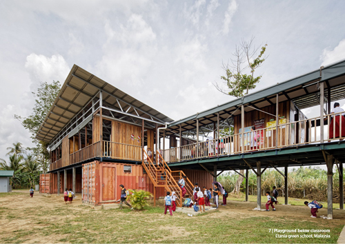 Etania Green Shool do nhóm tác giả Robertus Antonius Catharia Verrijt, Prasoon Kumar, Madhura Sham thực hiện tại Kota Kinnbalu, Beaufort, Sabah, Malaysia. Dự án gây ấn tượng với giải pháp nhà ở bền vững có khả năng tự cung tự cấp.