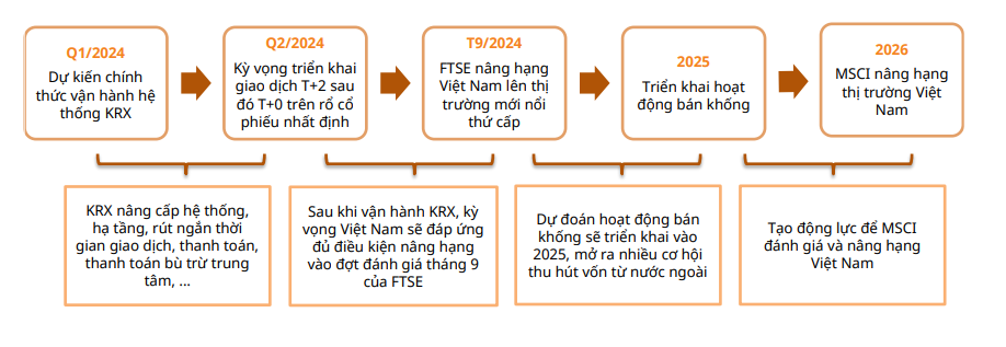 Theo đợt đánh giá tháng 9/2023 của FTSE, Việt Nam vẫn còn một tiêu chí hạn chế để nâng hạng thị trường, việc KRX đi vào vận hành kỳ vọng nhiều chuyển biến tích cực, là nhân tố hỗ trợ để hiện thực hóa lên thị trường mới nổi.