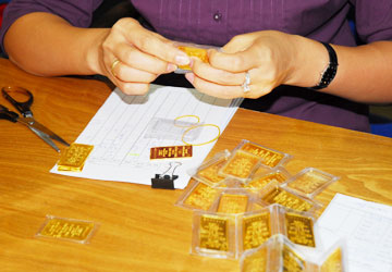 | Không có chuyện tạo biên độ cho vàng trang sức Qua ghi nhận tại các tiệm vàng khu vực chợ Thiếc (quận 11), chợ Phạm Văn Hai (quận Tân Bình), chợ Bến Thành (quận 1), chợ An Đông (quận 5)… ngày 25-1, phần lớn các tiệm vàng đều có bán vàng nhẫn SJC đóng vỉ hoặc vàng nhẫn của tiệm thay thế cho vàng miếng. Từ khi việc mua bán vàng miếng được quản lý theo Nghị định 24 thì thị trường vàng xuất hiện loại vàng nhẫn đóng vỉ, khiến người dân rất băn khoăn về giá cả và chất lượng. Trao đổi với ông Nguyễn Hoàng Minh, Phó Giám đốc NHNN Chi nhánh TP.HCM, được biết theo Nghị định 24 thì vàng nhẫn là vàng trang sức và không thay thế cho vàng miếng. Ông Minh cũng thông tin thị trường vàng hiện đang đi vào ổn định và không có chuyện NHNN tạo biên độ cho vàng trang sức như cách quản lý ngoại hối như một số cơ quan truyền thông đã đưa tin. BÙI NHƠN Sẽ có trung tâm giao dịch vàng miếng tại Hà Nội và TP.HCM NHNN tham gia thị trường với vai trò kiến tạo và chỉ đạo đảm bảo sát giá thị trường.Giai đoạn đầu NHNN sẽ đấu thầu thủ công tại chỗ để bán ra chứ không phải để mua. Ngoài ra, NHNN sẽ xây dựng quy trình xuất nhập khẩu, trực tiếp điều tiết chiều bán ra nhằm kiểm soát khả năng đầu cơ đến mức tối thiểu. Về lâu dài, NHNN sẽ tổ chức hai trung tâm giao dịch vàng miếng tại Hà Nội và TP.HCM, phục vụ đấu thầu công khai, minh bạch. Sau khi thị trường ổn định khoảng hai năm sẽ tổ chức mua bán liên ngân hàng và DN. Thời điểm mua vàng vàotùy thuộc vào người dân và thị trường. Lượng cung tiền để thực hiện việc này đã được NHNN tính toán. Đã tham gia thị trường thì cần bảo đảm ba nguyên tắc: bảo toàn, thanh khoản và sinh lời. Đương nhiên, NHNN không muốn lỗ nhưng chuyện hạch toán quy ước lãi - lỗ đối với vàng phức tạp hơn nhiều so với ngoại tệ. Sinh lời không phải là mục đích ưu tiên hàng đầu của NHNN. ÔngNGUYỄN QUANG HUY, |
