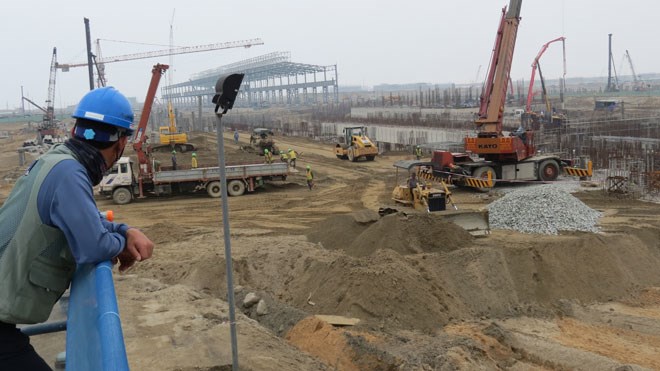 Rong ruổi trên chiếc xe máy gần cả buổi sáng, tôi không thể đi hết mặt bằng của đại công trường này. Theo các công nhân Việt Nam, thi công các tổ hợp ở đây chủ yếu là các nhà thầu Việt Nam và Hàn Quốc, còn Trung Quốc chỉ là các nhà thầu phụ.