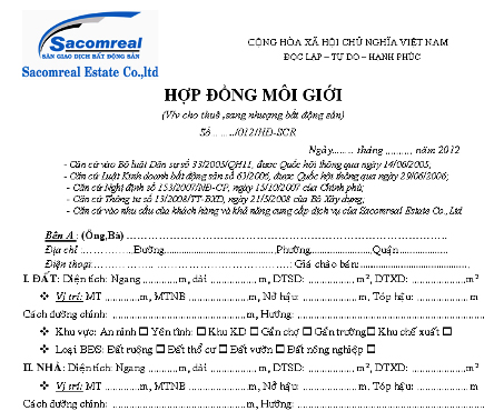 Do cần tiền gấp để trả nợ, anh Đinh Đức Thái (44 tuổi, nhà số 118/15 đường số 8, P.Bình Hưng Hòa B, Q.Bình Tân) có rao tin bán nhà trên mạng internet. Không bao lâu, có rất nhiều nhân viên các công ty môi giới địa ốc nhắn tin liên lạc, trong đó có thể kể đến như Công ty TNHH Quản lý bất động sản Vietcomreal (Trụ sở: 2Bis Nam Quốc Cang, Q1; VPĐD: 170/45 Lê Đức Thọ, Q.Gò Vấp) cử nhân viên xuống giao dịch trong quán cà phê. Theo đó cả hai thỏa thuận theo hợp đồng đồng ý mức hoa hồng cho công ty là 0%; phí ký gửi ban đầu là 800.000 đồng.