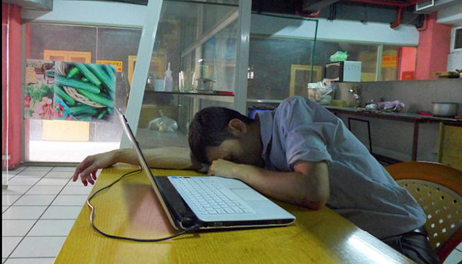Một tiểu thương ngủ gục tại quầy hàng bán trái cây trong chợ Cửa Nam, Hà Nội - Ảnh: Nguyễn Khánh
