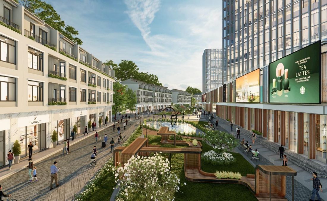 Theo chia sẻ từ chủ đầu tư, tuyến phố này khi hoàn thành sẽ trở thành một thiên đường mua sắm bất tận. Điểm đặc biệt của con phố này là các cửa hiệu nằm giữa công viên với những vườn hoa hoặc hồ nước xinh xắn. Khách hàng phải mất cả ngày để trải nghiệm hết tuyến phố này.
