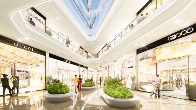 Điểm nhấn của của khu trung tâm thương mại chính là tổ hợp khu trung tâm thương mại dưới tầng đế của S-Premium sở hữu vòm pha lê đặc sắc, ấn tượng. Khu trung tâm thương mại này này được phát triển theo mô hình shopping in the park trong nhà.