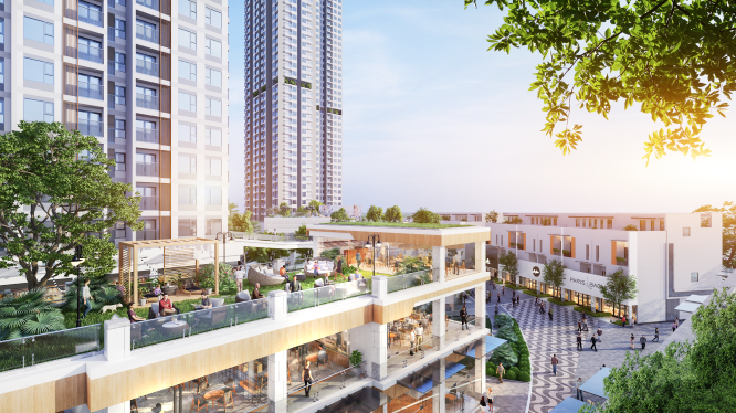 Khu đại trung tâm thương mại liên hoàn, kết hợp với tuyến nhà phố vịnh đảo và khối đế của tòa S3 và S-Premium tạo thành 2 dãy phố đi bộ shopping - ẩm thực - giải trí chạy song song với nhau.