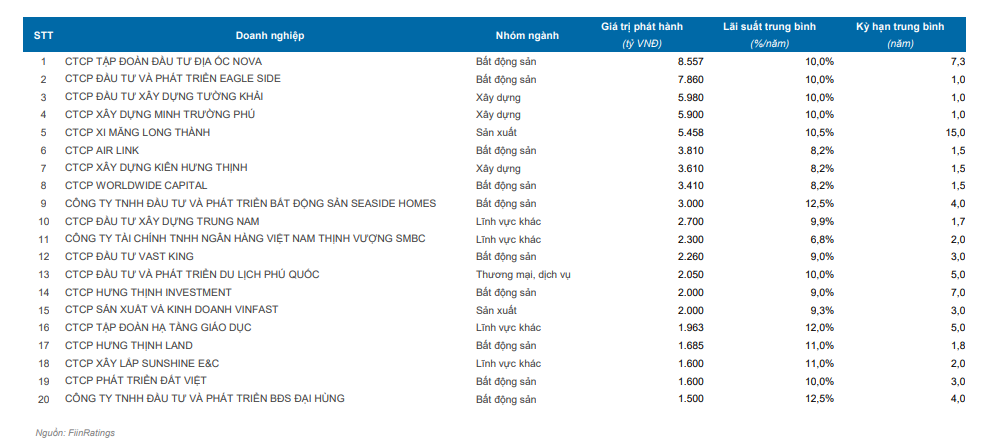 Top 20 nhà phát hành trái phiếu doanh nghiệp nhiều nhất 6 tháng đầu năm 2022 (phi ngân hàng).